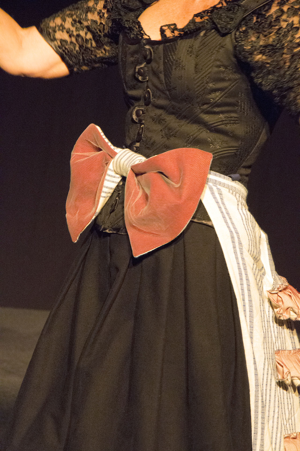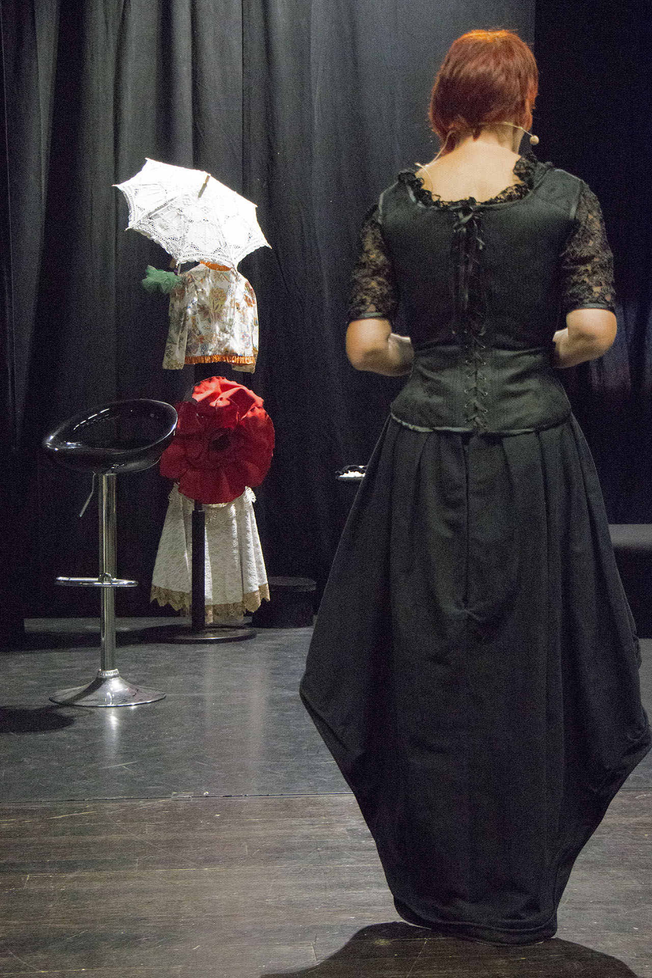 Chaque costume et accessoire, changés à vue, cadencent une succession de différents tableaux de l’univers féminin. Traduire un voyage temporel chronologique de 3 siècles à travers la littérature et la chanson est un des enjeux principaux.